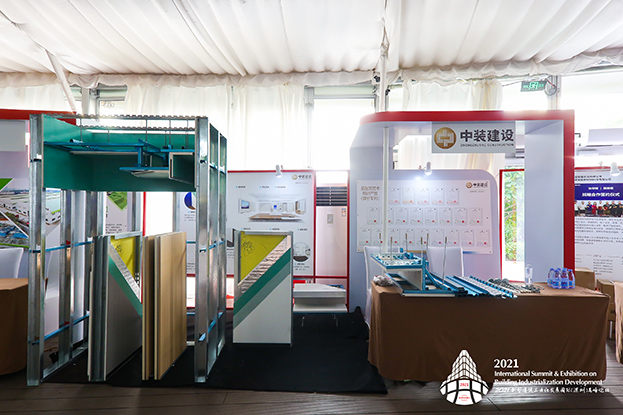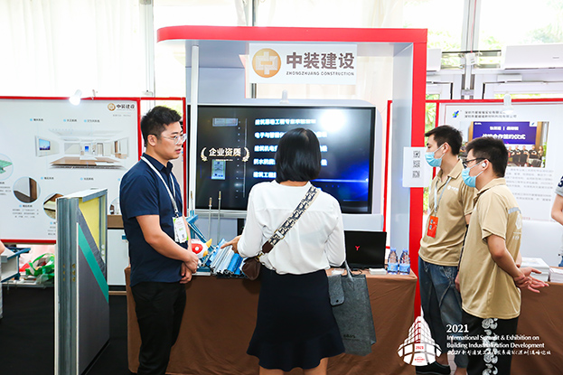 在專家主題演講之余,精品展會同時進行,公司展位吸引了來自全國各地的眾多領導、專家、行業大咖的長久駐足,嘉賓們對中裝建設在建筑工業化和裝配式建筑方面取得業績予以高度肯定,對中裝建設在裝配式領域研發、設計、構件生產、施工、培訓、咨詢、信息化建設等方面的工作表示贊賞。